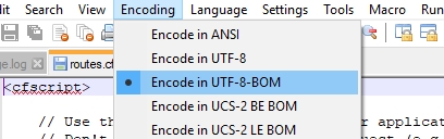 Likewise, umlauts in routes would need for the /config/routes.cfm